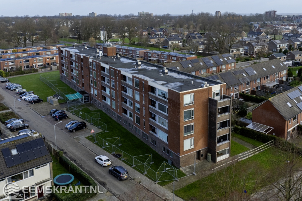 Delfzijl – Sinds zondagmiddag zijn rond een flat aan de Vlamoven in Delfzijl bouwhekken geplaatst en waarschuwt een bord voor een onveilige situatie. Deze maatregelen zijn genomen naar aanleiding van een AOS-melding (acuut onveilige situatie) die zaterdag is ingediend bij het Instituut Mijnbouwschade Groningen, in opdracht van de eigenaar van de flat.