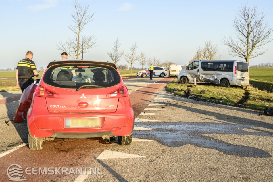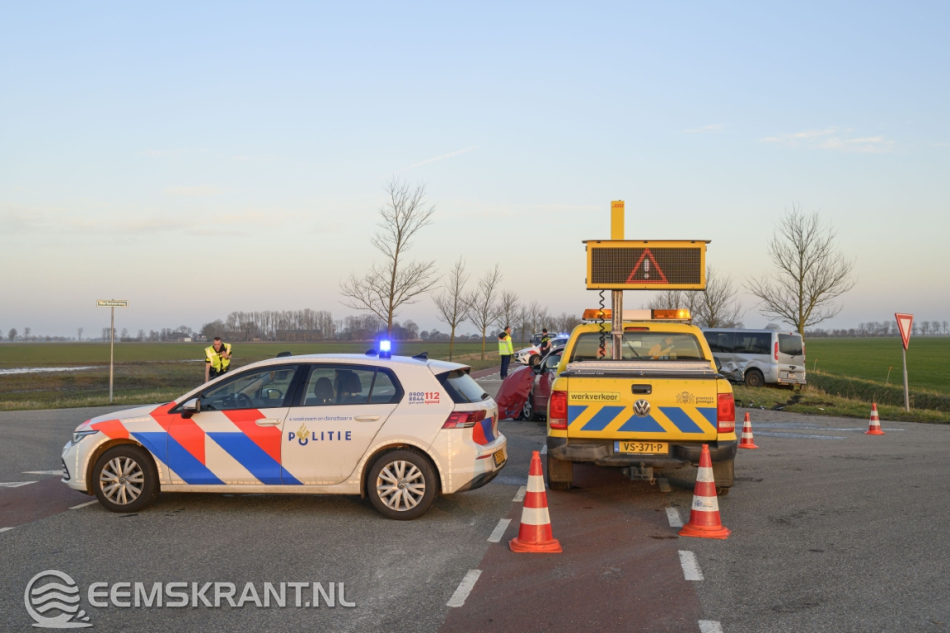 De kruising is tijdelijk afgesloten voor doorgaand verkeer. Een berger komt ter plaatse om beide voertuigen af te slepen.