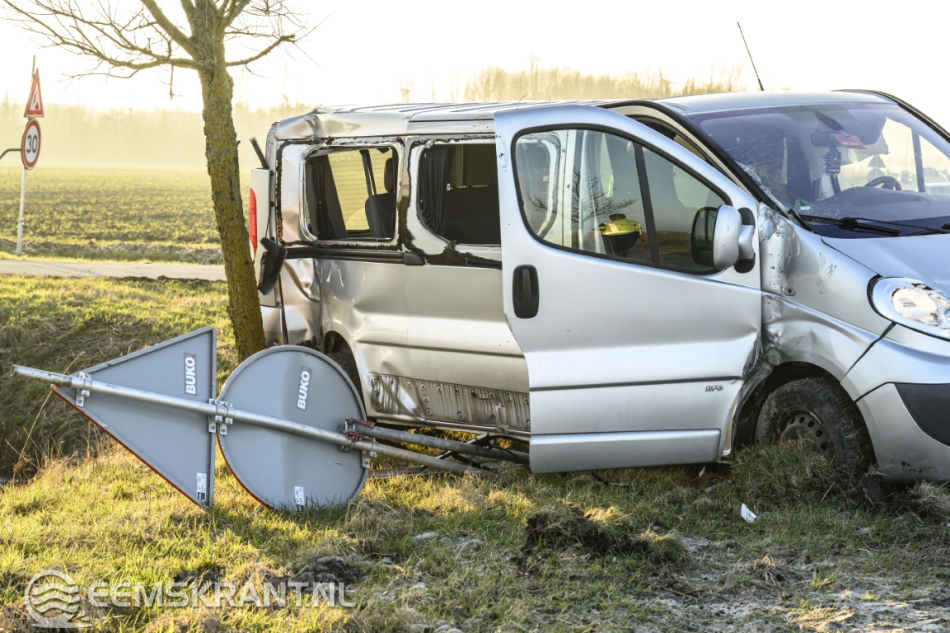 Een automobilist die vanuit de richting Borgsweer kwam, zag op de kruising een bestelbus over het hoofd en botste tegen de zijkant van het voertuig. Door de klap schoot de bestelbus van de weg en raakte daarbij een straatlantaarn en meerdere verkeersborden.