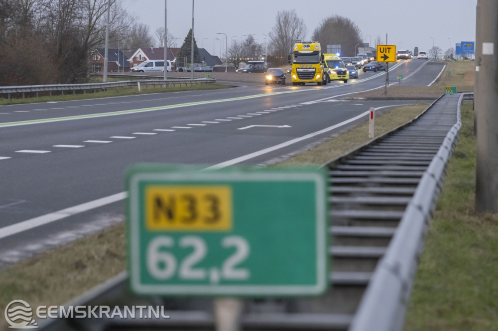 De toedracht van het ongeval is onduidelijk. De N33 was enige tijd afgesloten richting Siddeburen, het verkeer werd via de Farmsumerweg omgeleid. Door het ongeluk ontstond er een file van enkele kilometers. Beide voertuigen zijn door een bergingsbedrijf afgesleept.