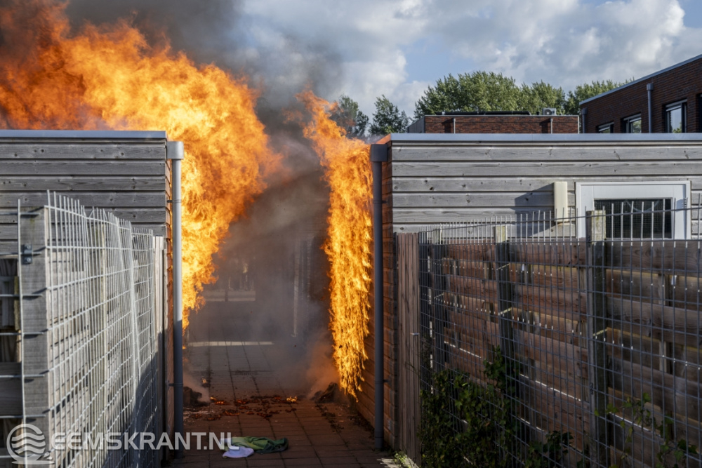 Delfzijl – Een forse uitslaande brand in een schuur achter een woning aan de Kornelis ter Laanstraat in Delfzijl heeft woensdagavond voor flinke schade gezorgd. De brand sloeg over op schuttingen en een schuurtje. Ook liep een woning schade op, door de hitte zijn enkele ramen geknapt.