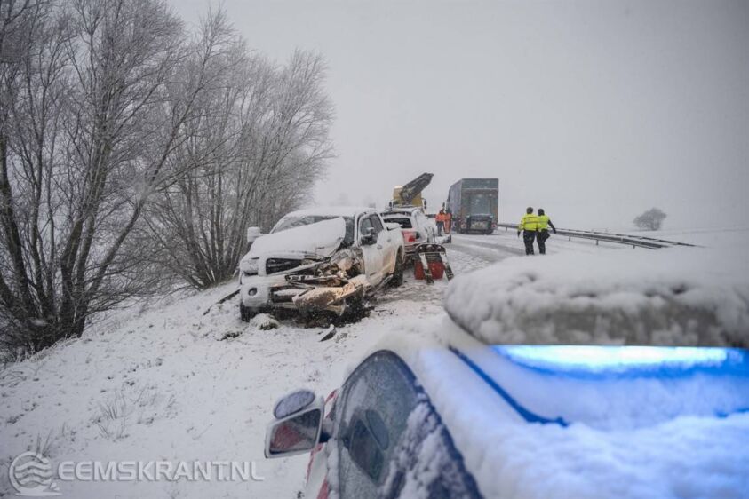 Door het ongeval ontstond forse schade aan de auto, er raakte niemand gewond. De hulpdiensten zijn geruime tijd bezig geweest met het opruimen van het ongeluk. Rijkswaterstaat is vervolgens druk geweest met het sneeuwvrij maken van de weg.