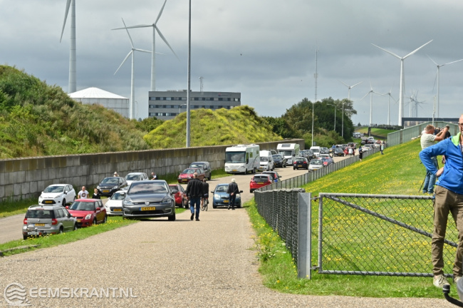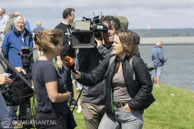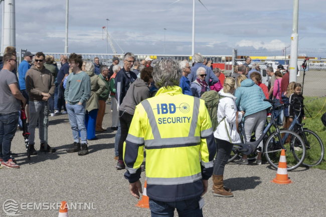 De aankomst van het schip trok enkele honderden belangstellenden naar de kust, die met verrekijkers de tocht van het schip over de Waddenzee volgden.