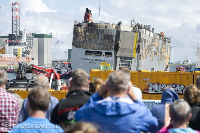 Uitgebrand autoschip Fremantle Highway aangemeerd in de Julianahaven, een fotoverslag van vandaag
