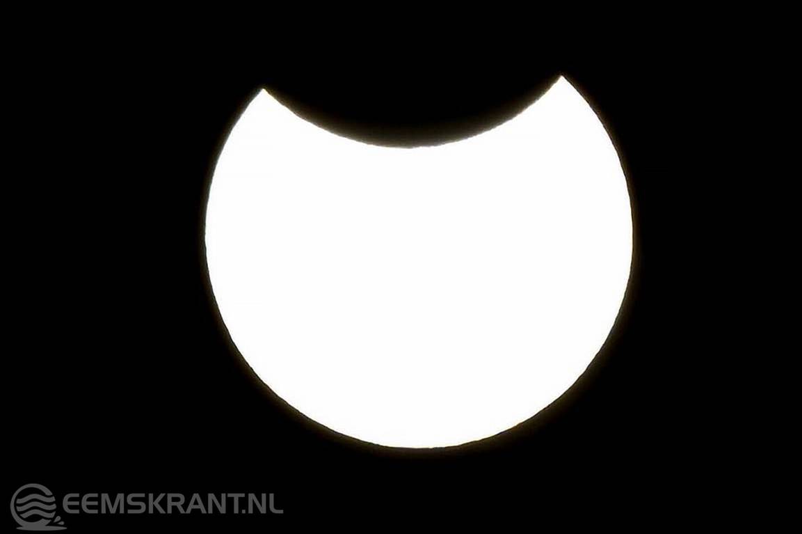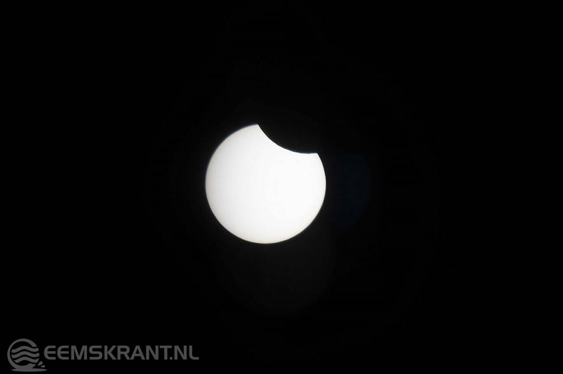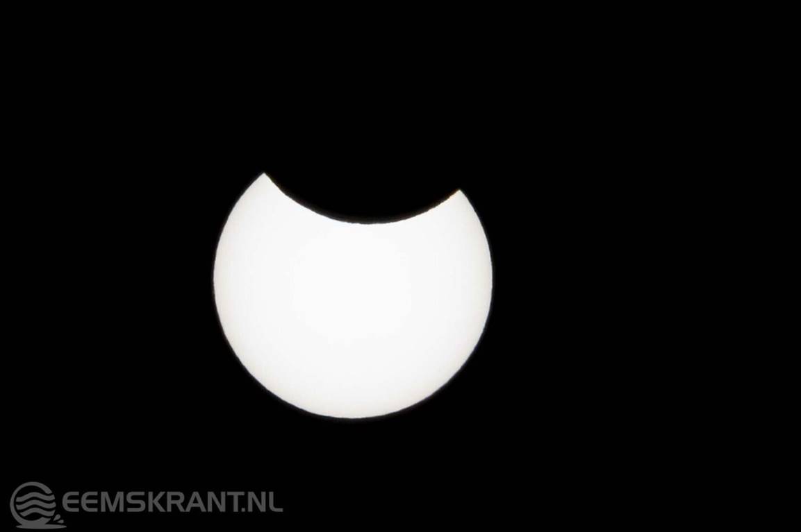 Delfzijl – De gedeeltelijke zonsverduistering was rond het middaguur goed te zien. Vanaf 11.18 uur schoof de maan voor een deel tussen de aarde en de zon. Daardoor leek het alsof er een hapje uit de bovenkant van de zon is genomen. Het is de eerste gedeeltelijke eclips boven Nederland sinds 2015.