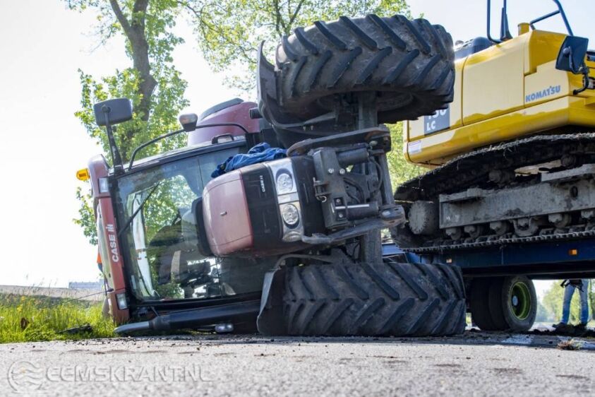 De trekker kantelde en blokkeerde de gehele Hogelandsterweg. De chauffeur raakte bij het ongeval niet gewond. Het bedrijf waarvoor de chauffeur reed heeft met de graafmachine, die de combinatie vervoerde, de trekker weer op zijn wielen gezet.