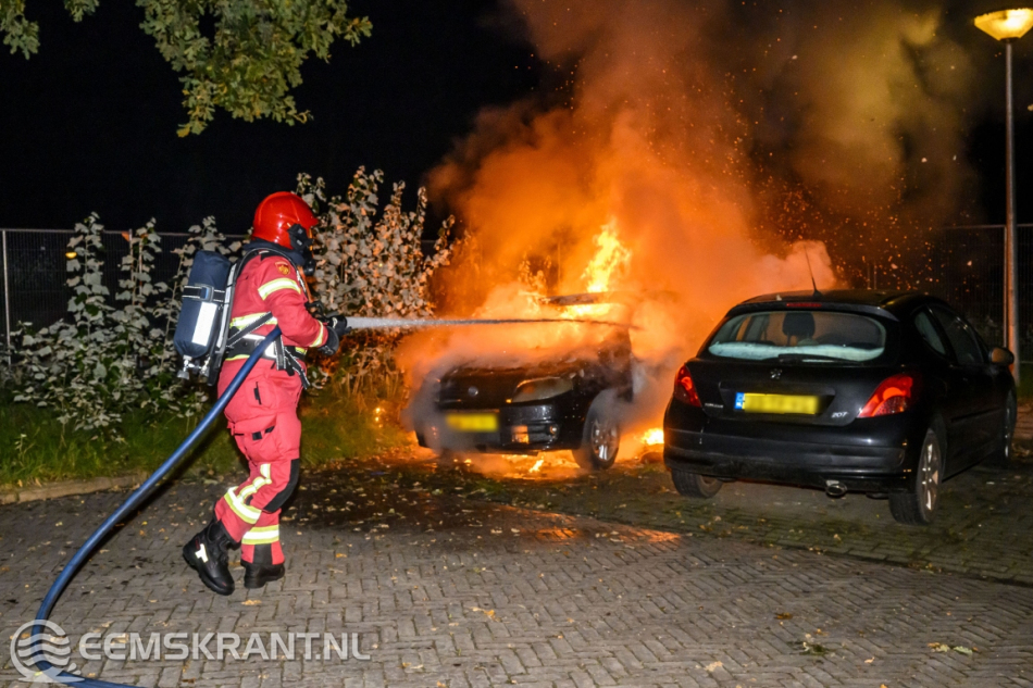 Delfzijl – In de nacht van maandag op dinsdag is aan het Sont in Delfzijl een geparkeerde auto volledig uitgebrand. Een tweede voertuig liep aanzienlijke schade op.