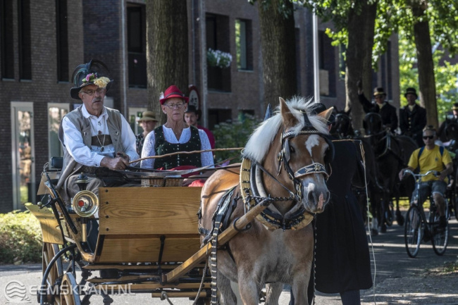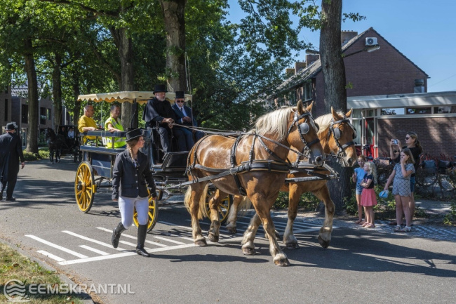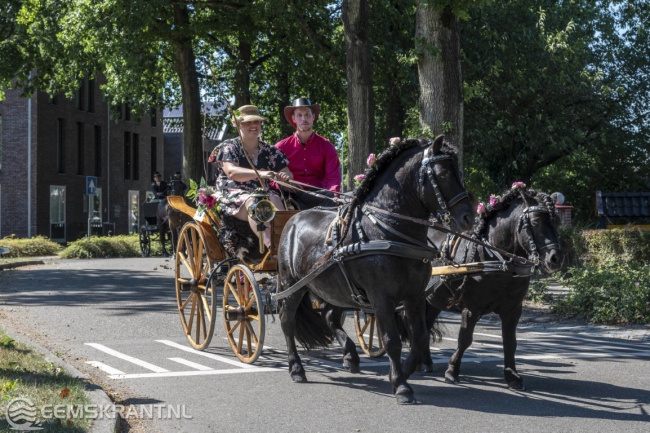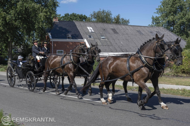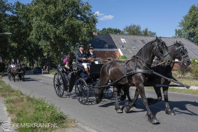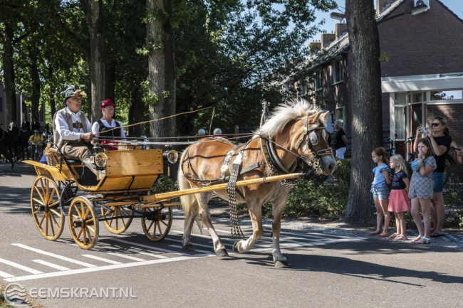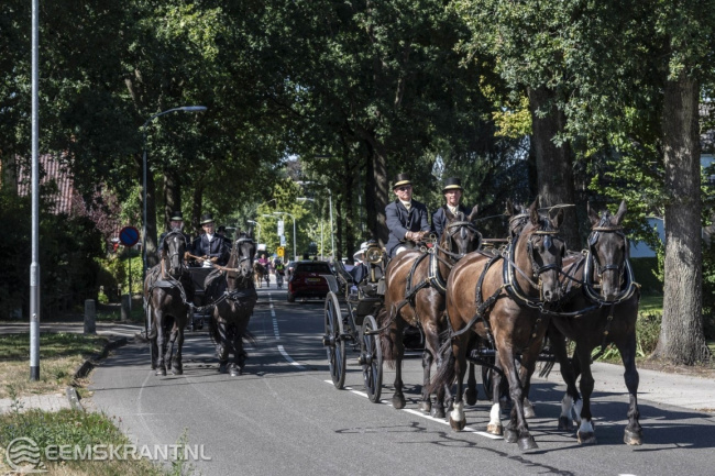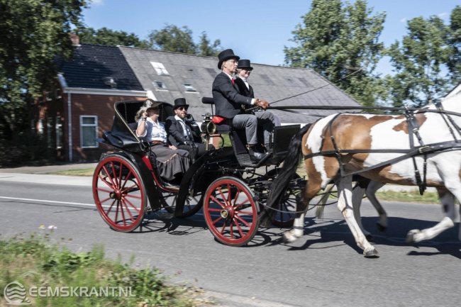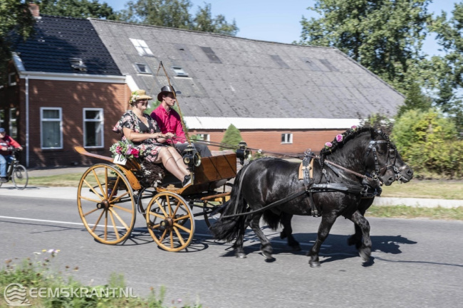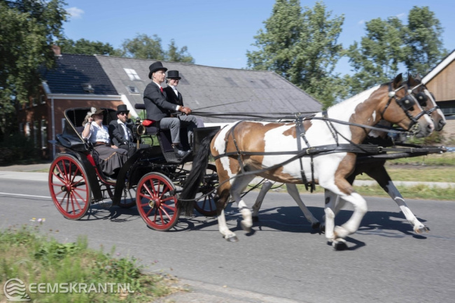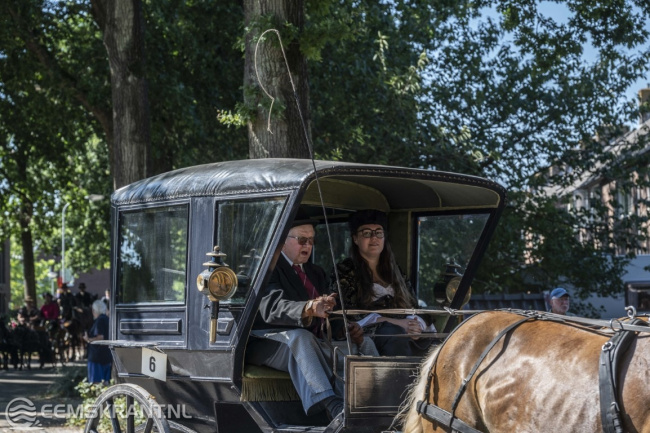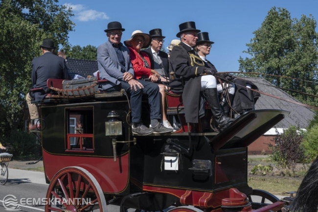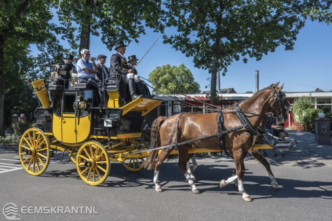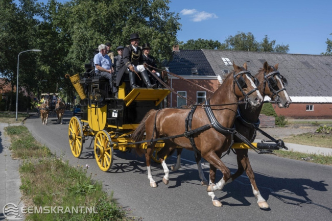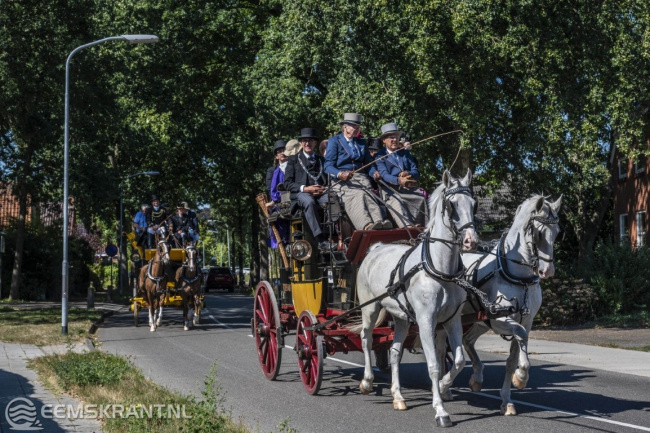 Een groot aantal antieke rijtuigen en diligences trokken door de gemeente Midden-Groningen. Ze werden getrokken door één, twee of soms zelfs vier paarden of pony’s. De koetsiers en hun passagiers presenteerden zich in historische kledij. Een jury van de Vereniging van Traditioneel Gerij beoordeelde de aanspanningen op veiligheid, authenticiteit, conditie van de paarden en tuigage. De stoet werd begeleid door enkele oldtimers.