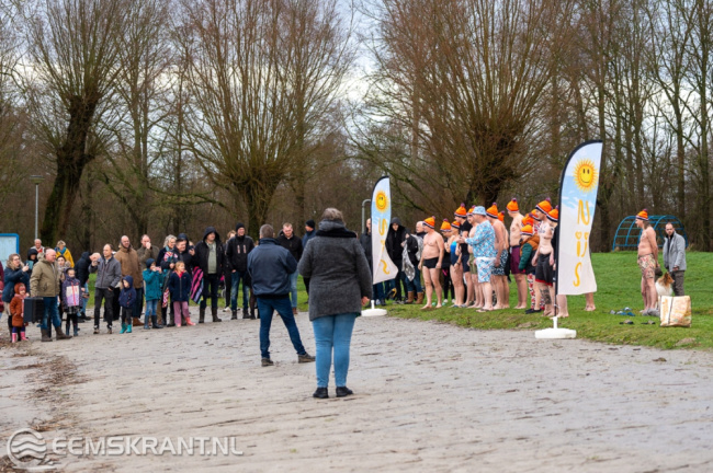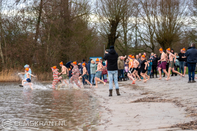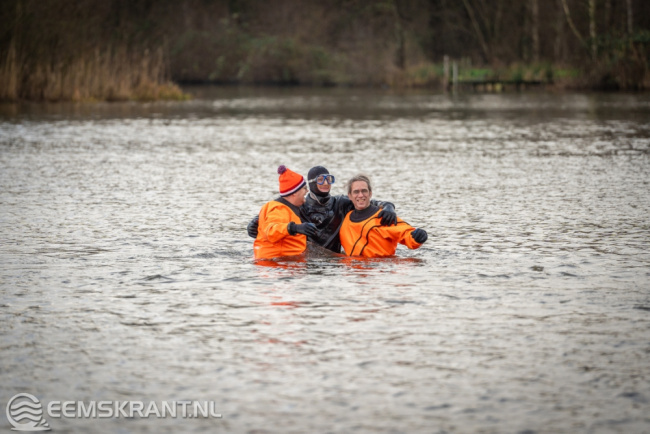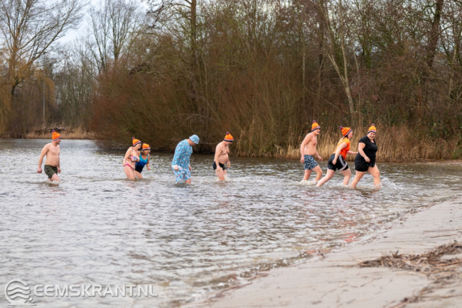 Wagenborgen – Ook in Wagenborgen werd maandagmiddag een nieuwjaarsduik georganiseerd. Om 15:00 uur konden de deelnemers een frisse duik nemen in het Proostmeer. Er deden rond de 20 deelnemers mee aan de duik, deze kregen een oranje muts mee naar huis. Na de nieuwjaarsduik konden de deelnemers zich omkleden en opwarmen in de kantine van de ijsvereniging, ook stond er een kop snert voor ze klaar.