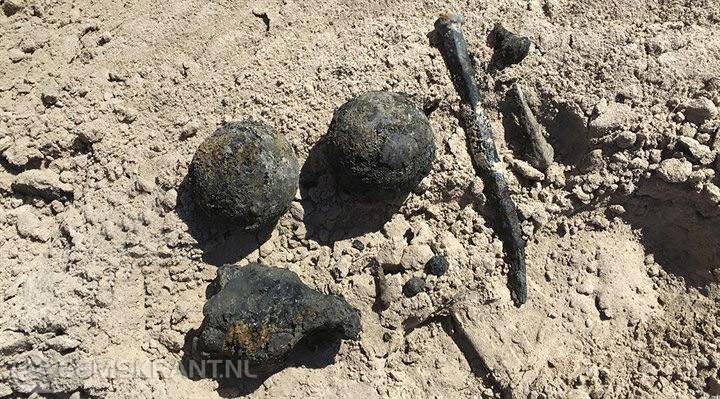 De aangetroffen kogels en kanonskogels dateren uit het zes maanden durende beleg van Delfzijl tussen november 1813 en mei 1814. De Franse kolonel Maufroy wilde niet geloven dat Napoleon verslagen was en bleef Delfzijl verdedigen. Zo bleef de vesting Delfzijl tot na de Franse tijd bezet. De kanonskogels zijn afgeschoten door Engelse oorlogsbodems die destijds in de Eems voeren voor de kust van Delfzijl. De kogels wegen 2.775 gram en hebben een doorsnede van 9 cm en zijn vermoedelijk door 12 ponds vuurmonden afgeschoten. Naast kanonskogels zijn ook loden kogels aangetroffen van zowel musketten (ronde kogels) als percussiegeweren (puntvormige en holle kogels).