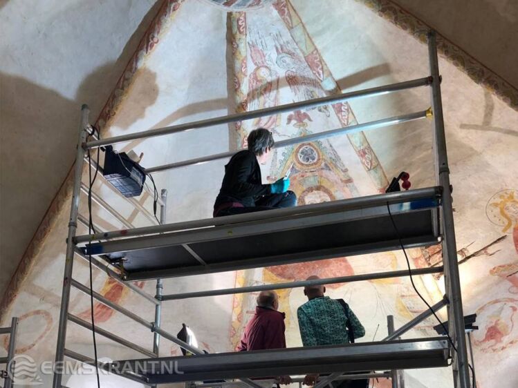 Dat deze eeuwenoude schilderingen bewaard zijn gebleven is ‘dankzij’ de eerste protestantse predikant die in 1605 werd aangesteld. Allergisch als hij was voor katholieke schilderingen liet hij het interieur wit kalken. Na de Tweede Wereldoorlog kwamen de gewelfschilderingen na een restauratie weer tevoorschijn. Het is fascinerend deze schilderingen nu vanaf de steiger van zó dichtbij te kunnen bekijken.