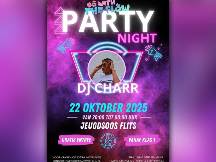 Loppersum – Op dinsdag 22 oktober verandert Jeugdsoos Flits in Loppersum in dé plek om te zijn voor jongeren uit de gemeente Eemsdelta. Tijdens de Go With The Flow Party Night draait alles om feest, muziek en gezelligheid. De avond wordt georganiseerd door jongeren zelf, met ondersteuning van het jongerenwerk en opbouwwerk van Cadanz Welzijn en 2BE.