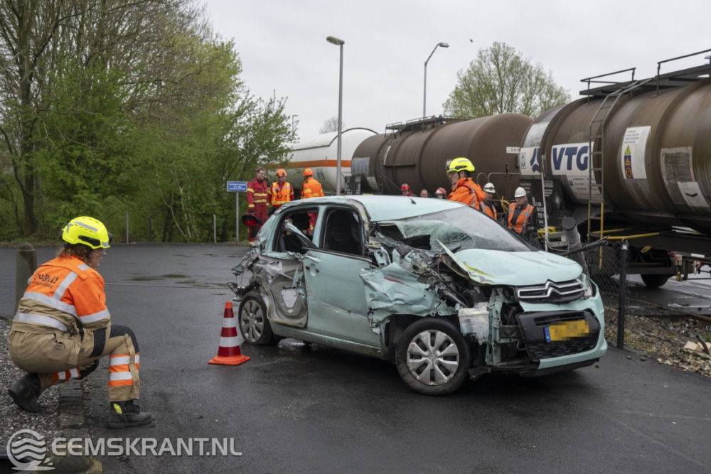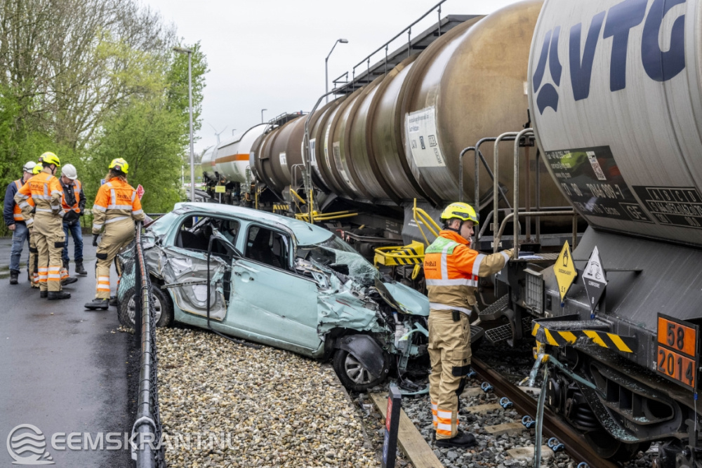 Farmsum – Donderdagochtend rond kwart voor acht zijn een auto en een goederentrein met wagons geladen met waterstofperoxide op elkaar gebotst bij de spoorwegovergang op de Duurswoldlaan in Farmsum. Het ongeluk vond plaats op een onbeveiligde spoorovergang.