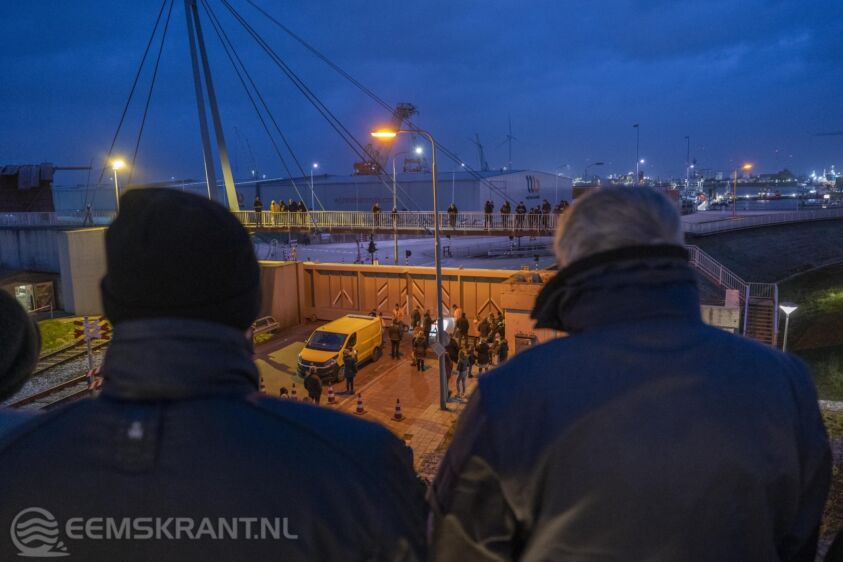 Delfzijl – Door de harde wind hebben we vandaag en morgen te maken met hoogwater op zee. Rijkswaterstaat voorspelt rond 20:40 uur in Delfzijl een waterstand van NAP +3.20. Dit betekent dat de dijkdoorgangen (coupures) in Delfzijl worden gesloten. Dit gebeurde rond 17:30 uur onder grote belangstelling. De coupures in Delfzijl sluiten altijd bij een verwacht waterpeil op zee van NAP + 3m of hoger.