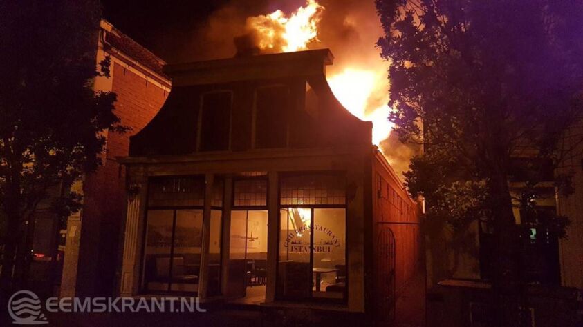 Bij aankomst van de brandweer sloegen de vlammen al uit het dak van het pand. Er wordt ingezet op het behouden van de omliggende panden. Het restaurant zelf kan als verloren worden beschouwd.