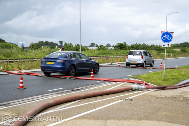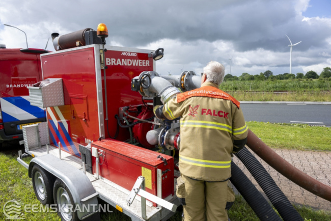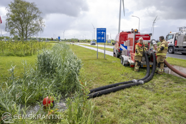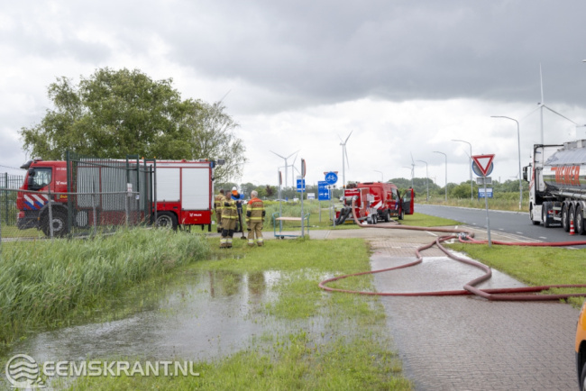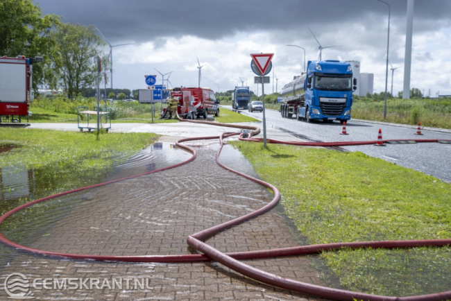 De bedrijfsbrandweer van het Chemiepark werkt samen met een ander bedrijf om het water af te voeren naar het Oosterhornkanaal. Hiervoor zijn slangen op de weg gelegd, wat enige overlast voor het verkeer veroorzaakt.