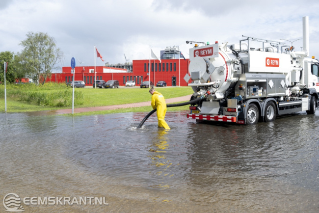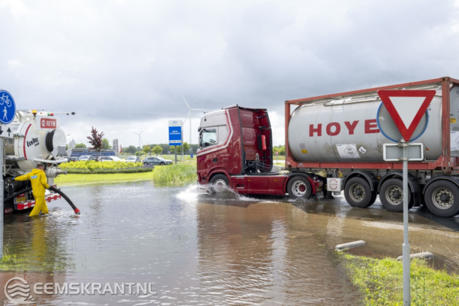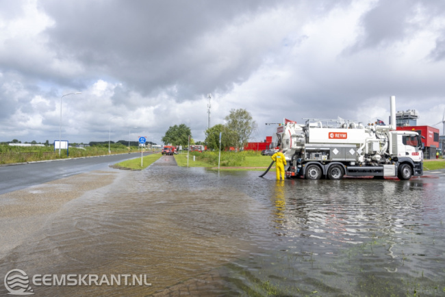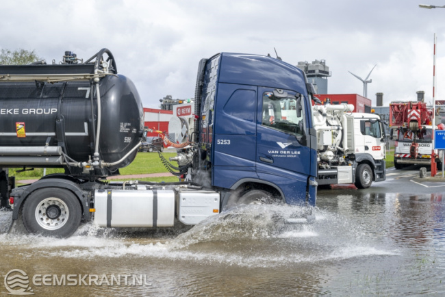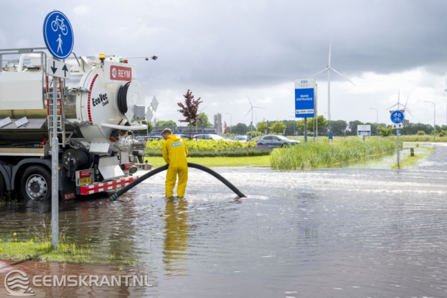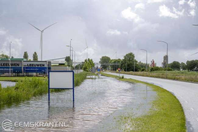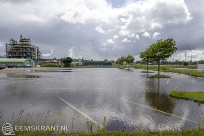 Farmsum – De zware regenval van maandag heeft op diverse plekken voor wateroverlast gezorgd, waaronder aan het Oosterhorn in Farmsum. Dinsdagochtend werd het fietspad langs het Oosterhorn afgesloten omdat het over een lengte van ruim 500 meter onder water staat. Ook een deel van het parkeerterrein van het Chemiepark is onder water komen te staan.