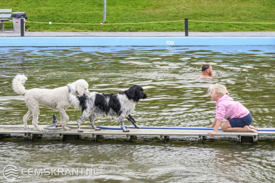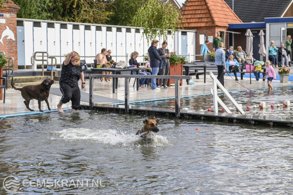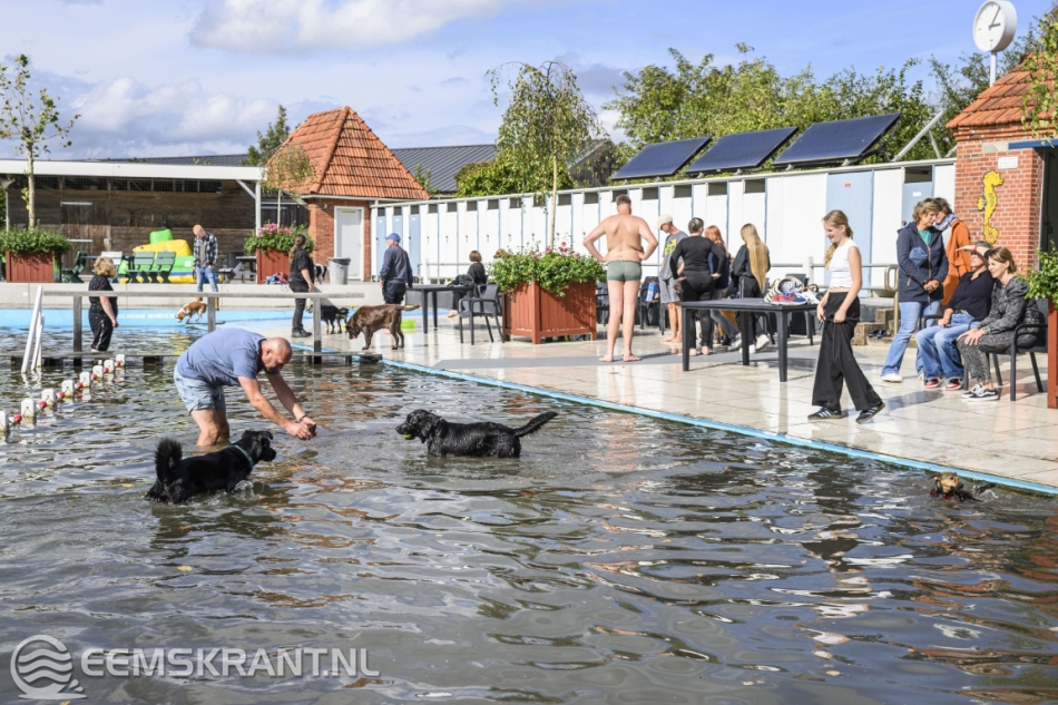 Loppersum – Afgelopen zaterdag werd het zwemseizoen in het Zoutwaterbad KP Zijl in Loppersum traditiegetrouw afgesloten met het populaire hondenzwemmen. Voor de laatste keer dit jaar mochten honden – samen met hun baasjes – genieten van een frisse duik in het zoute water.