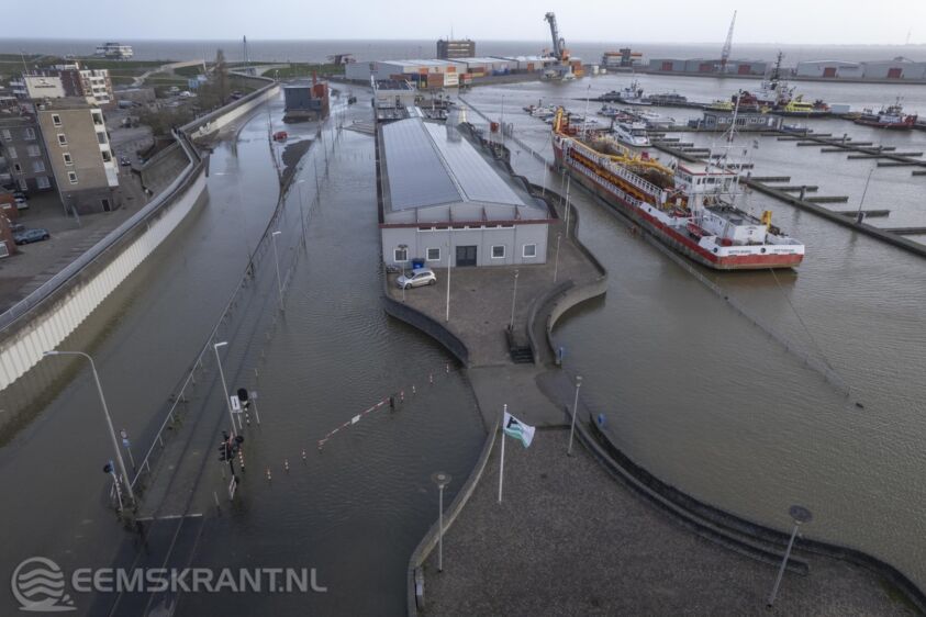 Delfzijl – Het haventerrein in Delfzijl is zondagochtend deels ondergelopen, dit werd veroorzaakt door de storm die afgelopen zaterdag over Noord-Nederland trok. Zaterdagavond was er al een licht verhoogde waterstand in de haven van Delfzijl, maar zondagochtend steeg het water tot +3.53 meter boven NAP. Daarmee liep een groot deel van de havenboulevard onder water.
