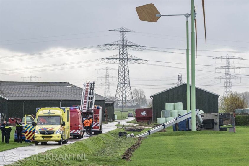 Appingedam – Een hoogwerker is donderdagmorgen gekanteld bij werkzaamheden aan een windmolen langs het Eemskanaal Zuidzijde in Appingedam. Op dat moment stond er een persoon in het bakje van de hoogwerker, deze belandde in een sloot en raakte gewond.