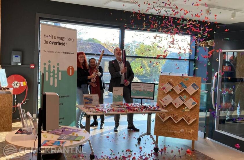 De medewerkers en vrijwilligers van de bibliotheek helpen vragenstellers tijdens de IDO-spreekuren op weg en verwijzen hen zo nodig door naar het maatschappelijk middenveld of de juiste overheidsinstantie.Na de inleiding dus de opening waarbij de confetti rijkelijk vloeide.