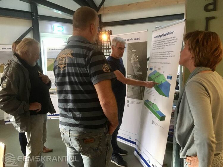 De bezoekers bogen zich over het ontwerp van de getijdenduiker en konden hun vragen, ideeën en zorgen kwijt. Ook de inrichting van het tussengebied met slibinvang, natuur en zilte landbouw was onderwerp van gesprek. Zo vragen veel mensen zich af waarom het water uit het zuidelijk deel verdwenen is. En of het strand bij Bierum wel bereikbaar blijft tijdens de aanleg van de duiker. Kijk voor het antwoord op deze en andere veel gestelde vragen op de website van de provincie.