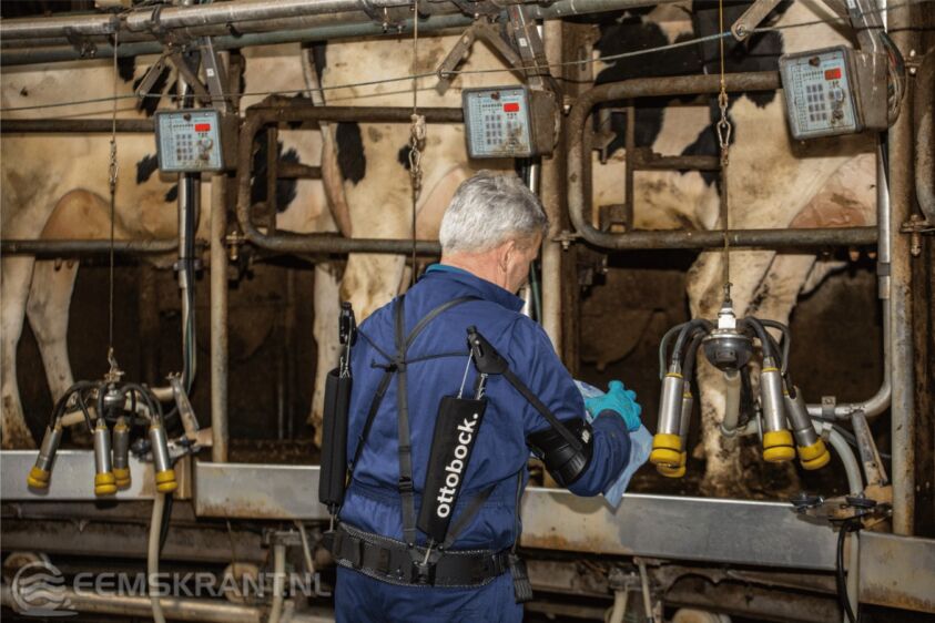Groningen – Dagelijks zijn in de provincie Groningen en Drenthe ruim 25 medewerkers van Coöperatie Abiant aan het werk bij boeren die wegens omstandigheden hun eigen bedrijf niet kunnen runnen. Deze zogenaamde bedrijfsverzorgers zijn een soort interim boeren die alle aspecten van het boerenbedrijf op hun duimpje kennen. Zij verrichten elke dag opnieuw zwaar fysiek werk om boerderijen draaiende te houden. Abiant heeft deze week de eerste 12 bedrijfsverzorgers uitgerust met exoskeletten die ervoor zorgen dat zij het beroep waar ze van houden langer kunnen blijven uitoefenen.