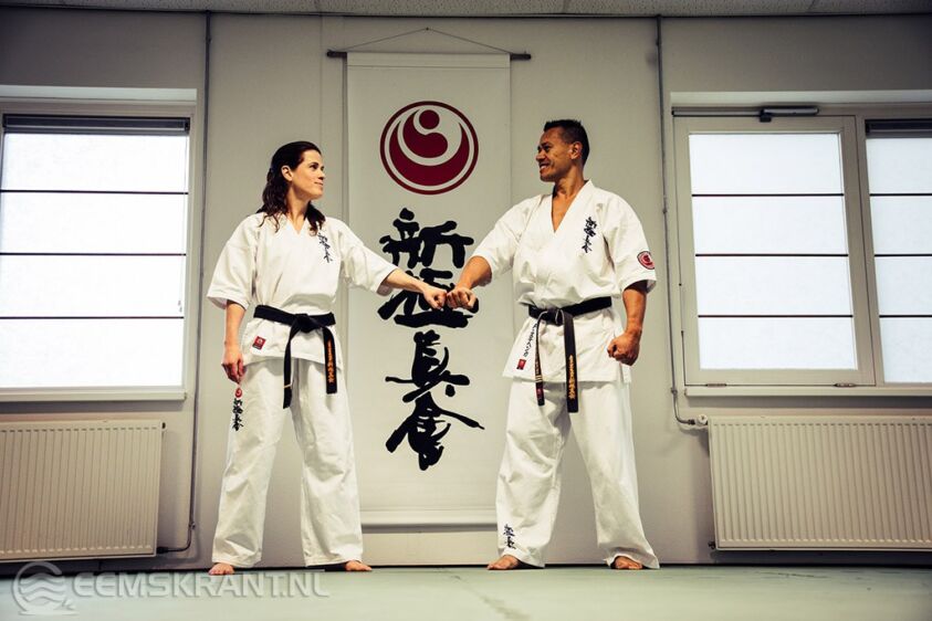 Delfzijl – Een eigen ruimte voor hun karatelessen: dat was al jaren de droom van Inge en Patrick Stegenga. Inmiddels is het zover, want afgelopen oktober betrokken zij het voormalige hoofdkwartier van de postduivenvereniging op het sportpark in Delfzijl. Binnen een maand toverden zij het koude gebouwtje, met voornamelijk betonnen vloeren en een verouderde kantine, om tot hun eigen, echte trainingsruimte met kleedkamers en een multifunctionele kantine. Inmiddels is hun Japanse School “Dojo Kyocho” volop in bedrijf.