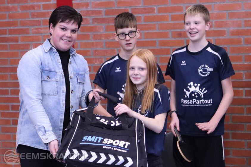 Als verrassing kwam Marijke Smit, eigenaresse van Smit Sport uit Delfzijl, de jeugd verblijden met een nieuwe sporttas voor elk lid met het logo van DTTC’78 erop. Dit voor de topprestatie die er door de jeugd afgelopen seizoen is neergezet!