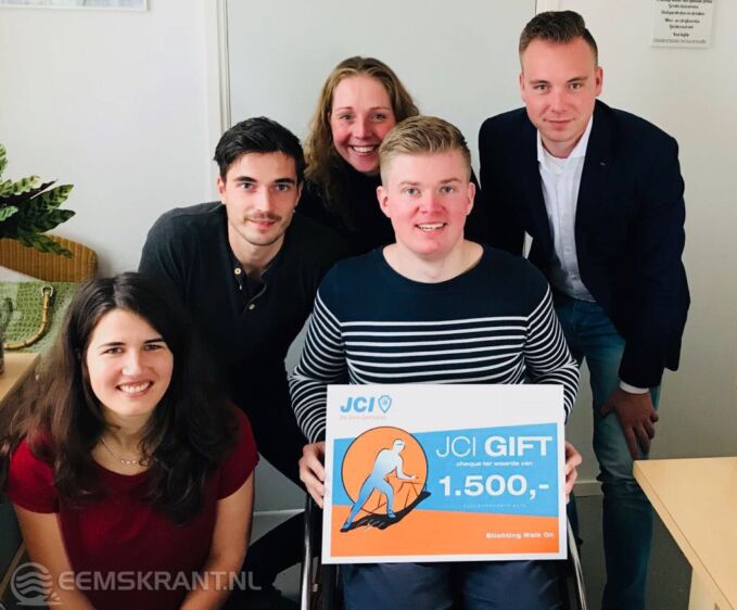 Zaterdag 28 oktober hebben een aantal leden van de JCI DDD bij Dennie thuis de cheque van € 1.500,- overhandigd. De Stichting Walk On zet zich onder andere in om mensen met een dwarslaesie weer te laten lopen. Dennie wil aantonen dat de gezondheid, zowel fysiek als mentaal, van iemand met een dwarslaesie, verbeterd door gebruik van de exoskelet zodat het gebruik als medisch hulpmiddel erkend kan worden in Nederland. De innovaties van de exoskelet zijn nog volop in ontwikkeling en de aanschaf is erg kostbaar €90.000- € 100.000,- De Junior Kamer Delfzijl is blij dat ze een bijdrage hebben kunnen leveren aan de doelen van de stichting en de aanschaf van het exoskelet voor Dennie weer een stap dichterbij is.