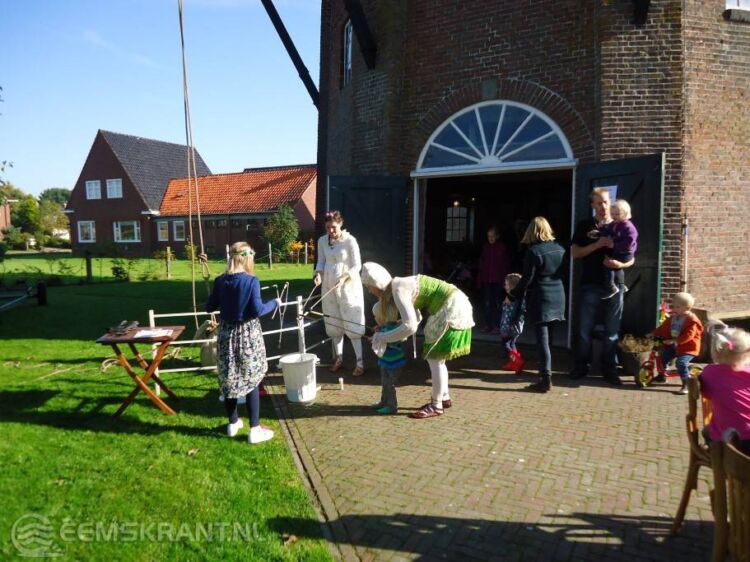 Loppersum – De kinderdag in het kader van oktobermaand-kindermaand bij koren- en pelmolen de Stormvogel in Loppersum afgelopen zaterdag was een groot succes. Zo’n 175 kinderen kwamen langs met en hun ouders/opa’s en oma’s kwamen langs. Er werden pannenkoeken gegeten, gesprongen op het springkussen, geknutseld en bellen geblazen.