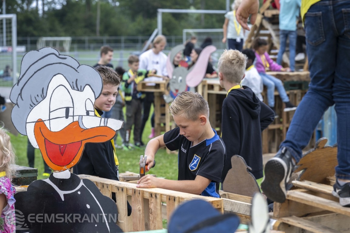 De kinderen begonnen vanmorgen traditiegetrouw met het bouwen van de hutten, dit jaar heeft de organisatie ervoor gekozen om zelf al hutten te bouwen hier mochten de kinderen hun eigen draai aan geven door dingen te veranderen. Dit jaar is het thema Disney, dit kan je onder andere terugvinden in de versieringen van de hutten.