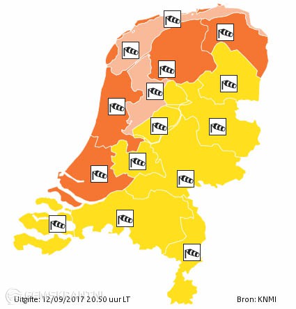 Groningen – Het KNMI heeft code oranje afgegeven in verband met (zeer) zware windstoten voor de provincie Groningen. Aan het einde van komende nacht bereikt een windveld met zware windstoten van 75 tot 100 km/uur het westen. Dit windveld breidt zich morgenochtend vroeg over het hele land uit. De windrichting is zuidwest tot west.