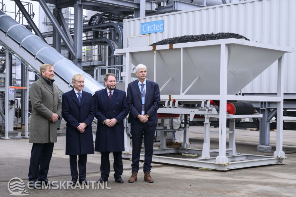 Farmsum – Koning Willem-Alexander heeft dinsdagochtend de nieuwe fabriek van autobandenrecycler Circtec in Farmsum officieel geopend. De Koning verrichtte de openingshandeling door plaats te nemen op een shovel, waarmee hij symbolisch het startsein gaf voor de productie.