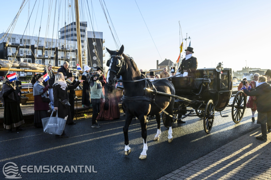 Rond drie uur in de middag arriveerde ‘Koning Willem I’ via het Oude Eemskanaal. De historische intocht vormde het begin van een dag vol activiteiten. Na zijn aankomst vervolgde de koning zijn weg door Delfzijl, per koets of te paard, begeleid door vele belangstellenden.