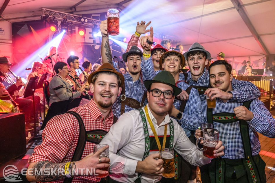 Delfzijl – Voor de zevende keer organiseerde muziekvereniging Koningin Wilhelmina zaterdagavond het Oktoberfest Delfzijl. In de feesttent bij Grand Café Het Lokaal genoten honderden bezoekers, velen gehuld in dirndl’s en lederhosen, van livemuziek, gezelligheid en uiteraard de bekende bierpullen.