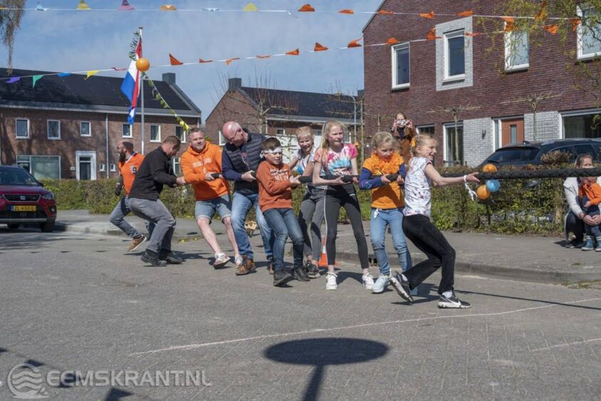 In een versierde Wieger van Den Bosstraat in Appingedam deden een aantal kinderen vandaag mee aan de alternatieve koningsspelen. Dit idee ontstond vorig jaar toen de koningsspelen op de scholen niet door gingen. De ouders hadden diverse spelletjes bedacht voor de kinderen zoals touwtrekken, spekhappen, kopspijkers en steltlopen. In teams namen de kinderen het tegen elkaar op, maar het ging eigenlijk niet om wie als eerste eindigde, maar om het plezier wat ze gezamenlijk hadden.