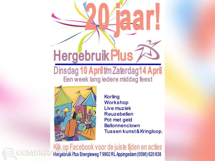 Appingedam – Kringloopwarenhuis Hergebruik Plus in Appingedam viert deze week van 10 tot en met 14 april haar 20-jarige bestaan.