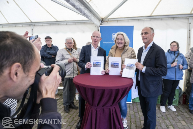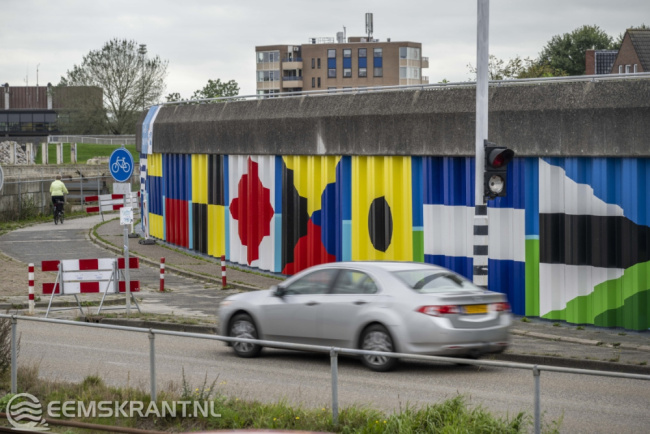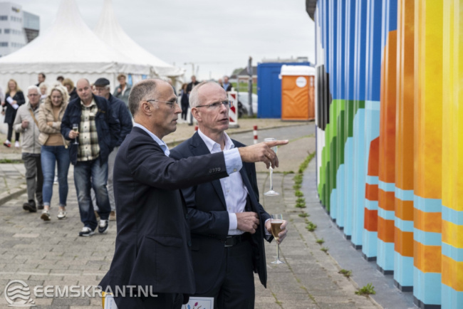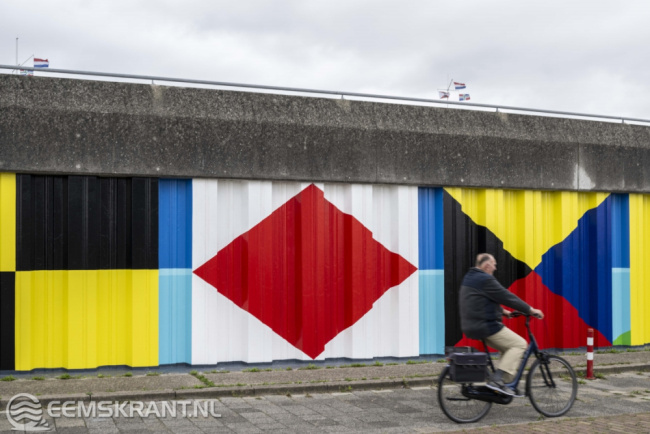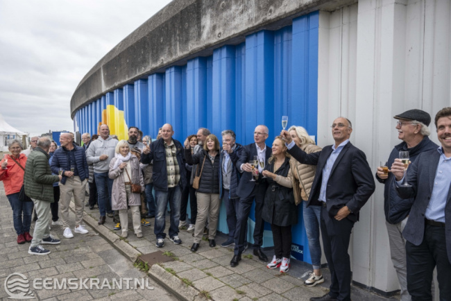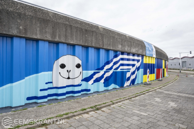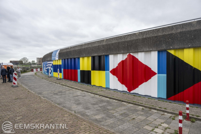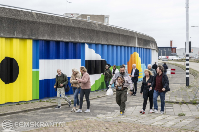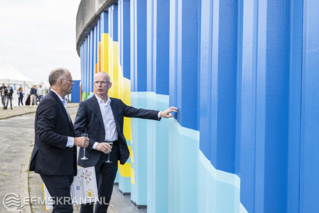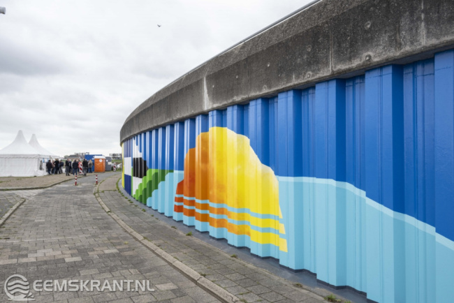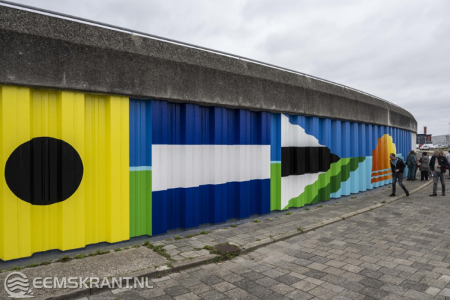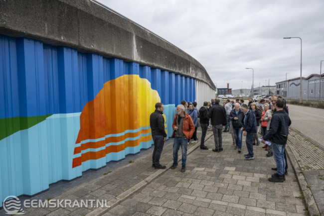 Iedereen die heeft bijgedragen aan de totstandkoming van dit bijzondere kunstwerk is uitgenodigd om hierbij aanwezig te zijn. Het betreft vrijwilligers van PPG, de gemeente Eemsdelta, heet waterschap Noorderzijlvest en kunstschildersvereniging de Stalmeesters. In de afgelopen anderhalve week hebben zij samen met de kunstenares een zeer kleurrijke schildering aangebracht op de damwand aan de Oosterveldweg in de haven van Delfzijl. Het 80 meter lange kunstwerk wordt aan beide zijden nog voorzien van een blauwe kleur die van donker naar licht afloopt.