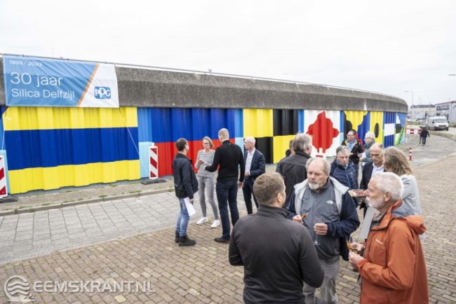 Ben Roosjen, projectleider kunstwerk namens PPG Industries: “Tijdens het uitvoeren van de werkzaamheden hebben we al veel positieve reacties gehad van voorbijgangers. Mede dankzij het mooie weer hebben veel vrijwilligers het als een feest ervaren om mee te mogen schilderen. We kijken terug op een zeer geslaagd project waarvan we hopen dat we er nog vele jaren plezier van hebben. Delfzijl heeft er een markant kunstwerk bij”.