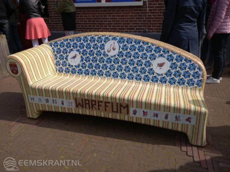 Warffum – Ook Warffum heeft nu een zogeheten Waddenbank, waarop verhalen uit het gebied worden afgebeeld met mozaïeksteentjes. De bank staat bij openluchtmuseum Het Hoogeland en werd op woensdag 3 mei onthuld door gedeputeerde Henk Staghouwer. Daarmee is Warffum het tiende en laatste dorp in het Waddenkustgebied dat een verhalenbank heeft gekregen. De plaatsing van de banken is onderdeel van het project Kiek over Diek, bedoeld om het bijzondere landschap langs de kust beter zichtbaar te maken.