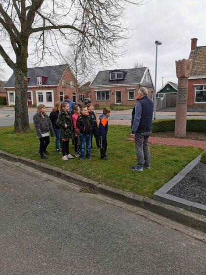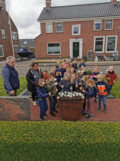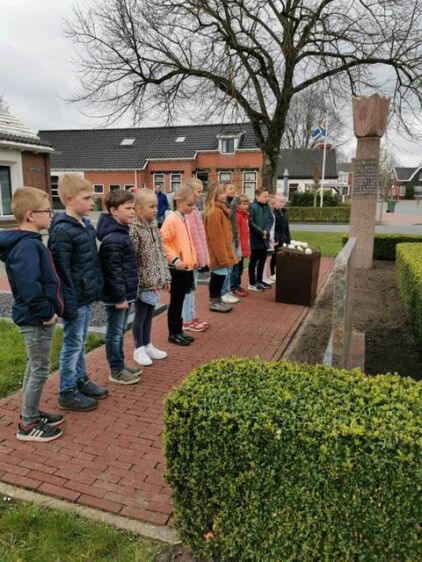 De school heeft extra exemplaren met de verhalen van de dorpelingen mogen ontvangen van Rudi Gerritsen, terwijl Roelf Folkersma de kinderen mee heeft genomen in de verhalen die zich vroeger hebben afgespeeld in Holwierde. De kinderen hebben bij het Canadese monument elk een anjer neergelegd.