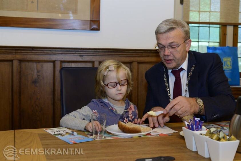Appingedam – Leerlingen van twee groepen van SBO de Delta uit Appingedam hebben donderdagochtend in de raadszaal van het gemeentehuis in Appingedam ontbeten met burgemeester Koos Wiersma. Aan de tafels vol met gezonde ontbijtproducten konden de leerlingen tussen het eten door vragen te stellen aan de burgemeester.