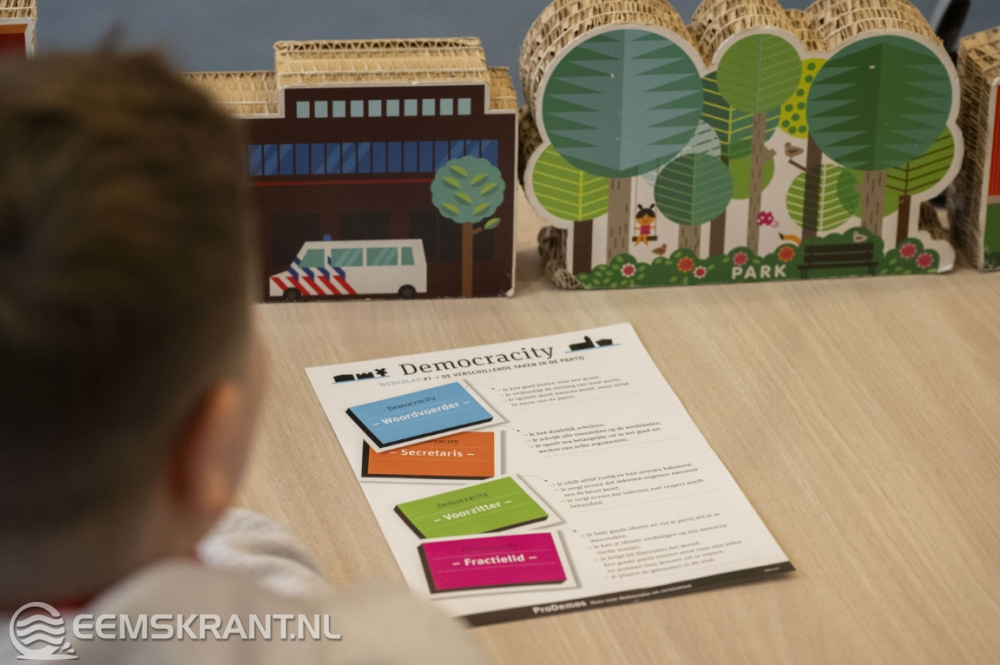 Delfzijl – Van 4 tot en met 12 maart verwelkomt de gemeenteraad van Eemsdelta leerlingen uit groep 7 en 8 van vijf basisscholen uit de regio. In de raadszaal van het gemeentehuis nemen de leerlingen deel aan het educatieve programma Democracity. Dit initiatief, geleid door ProDemos, stelt kinderen in staat om op een speelse manier politieke partijen op te richten, gezamenlijke beslissingen te nemen en een stad naar eigen inzicht op te bouwen. Raadsleden staan klaar om advies te geven en hun eigen ervaringen te delen.