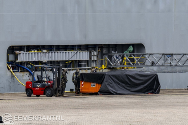 Het schip blijft naar verwachting tot half oktober in de Eemshaven liggen voordat het plaats moet maken voor een cruiseschip dat in de Eemshaven wordt afgebouwd.
