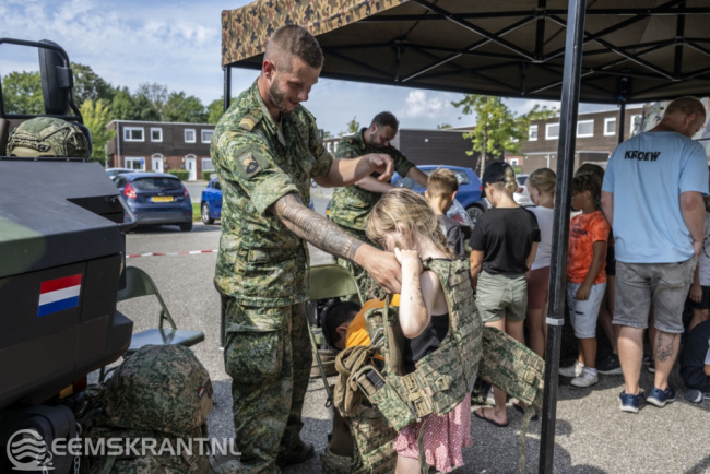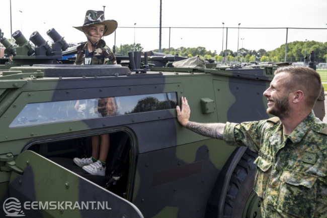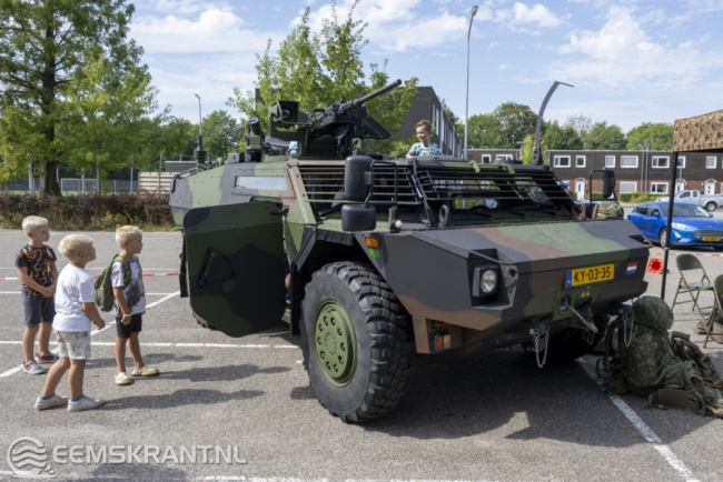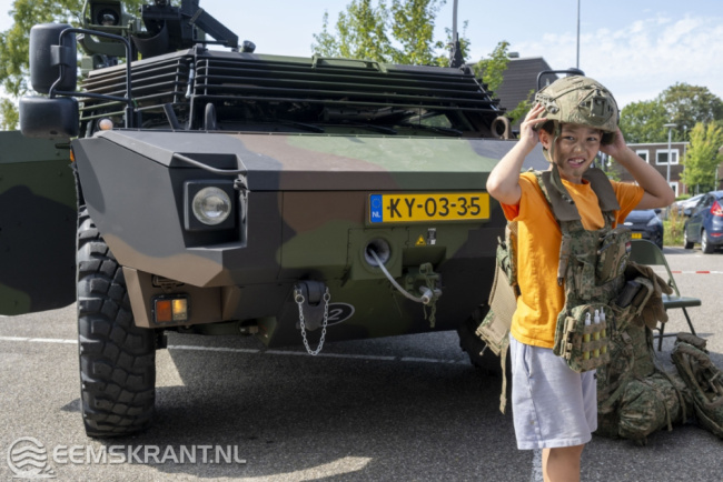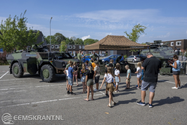 Op donderdag beleefden de kinderen een bijzondere verrassing: vijf militairen kwamen langs met hun volledige uitrusting en twee indrukwekkende legervoertuigen, de Boxer en de Fennek. De kinderen mochten alles van dichtbij bekijken, aanraken en kregen antwoord op hun vragen. Het was een unieke kans om een kijkje te nemen in de wereld van de militairen.