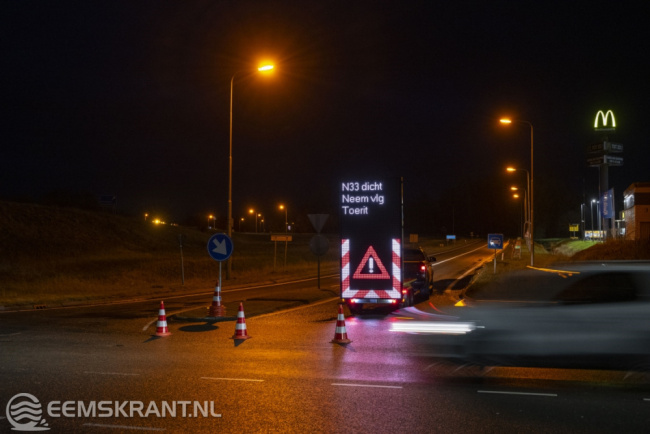 Het schip kwam door onbekende oorzaak vlak voor de brug schuin te liggen en raakte daarbij het remmingswerk van de brug. Na de aanvaring is er een storing ontstaan in de brug, de N33 werd tijdelijk afgesloten voor het verkeer.
