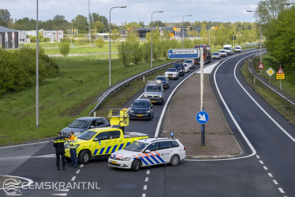 Appingedam – Na een verkeersongeval bij Appingedam is de N33 tijdelijk afgesloten tussen Industriegebied Fivelpoort en Siddeburen.