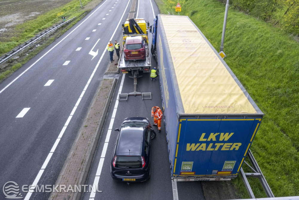 Het ongeval, waren twee auto’s betrokken, een vrachtwagenchauffeur had geen tijd om te wachten en probeerde via de berm langs het ongeval te komen wat resulteerde in een vastgelopen van de vrachtwagen in de berm. Geen van de inzittenden raakte bij het ongeval gewond.