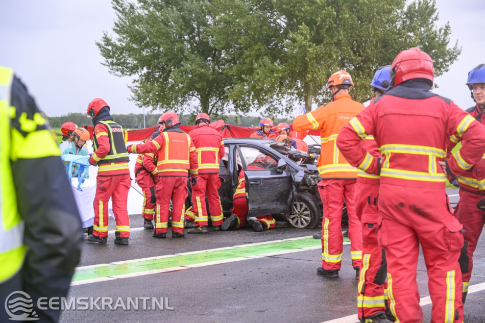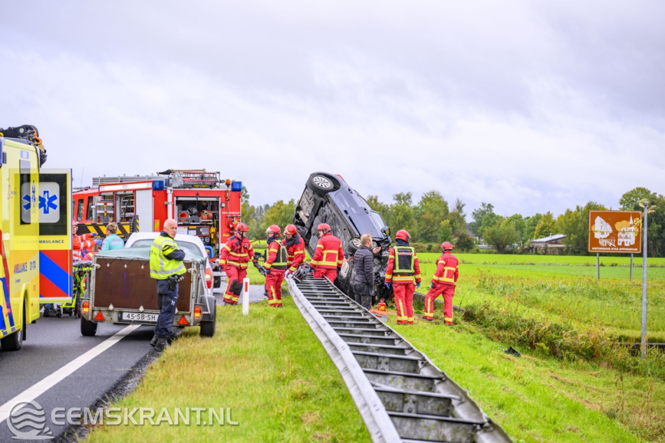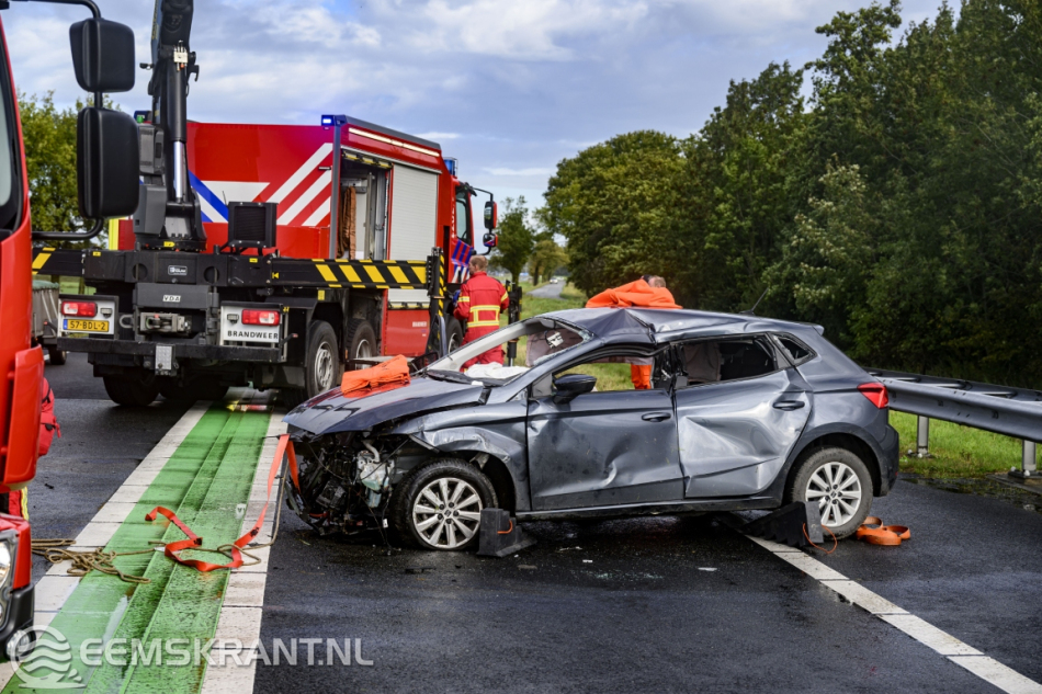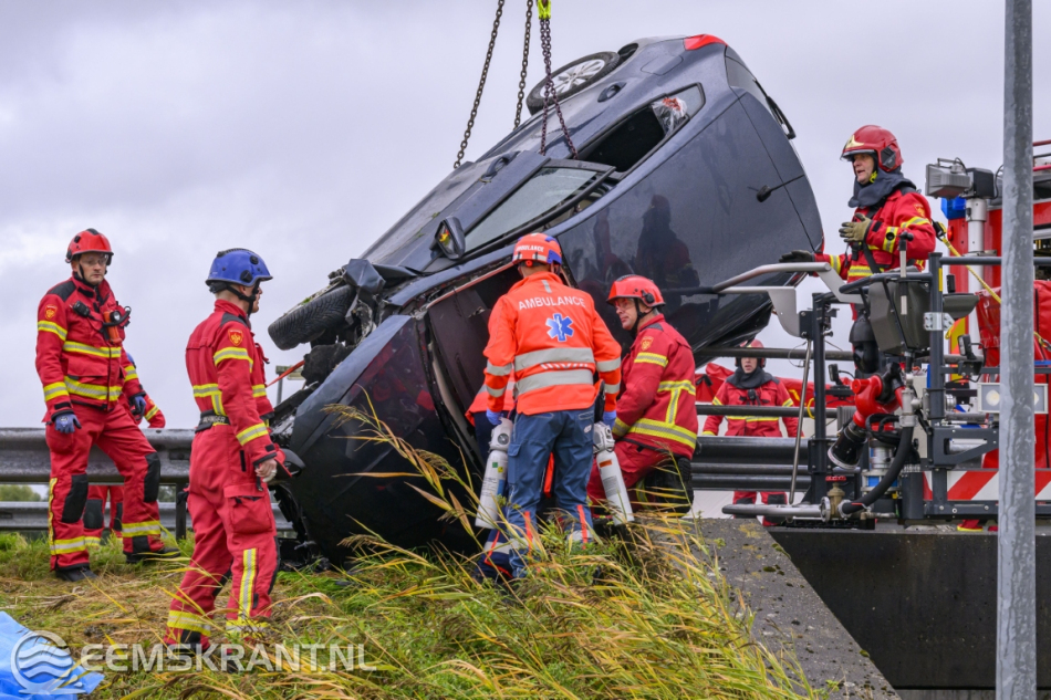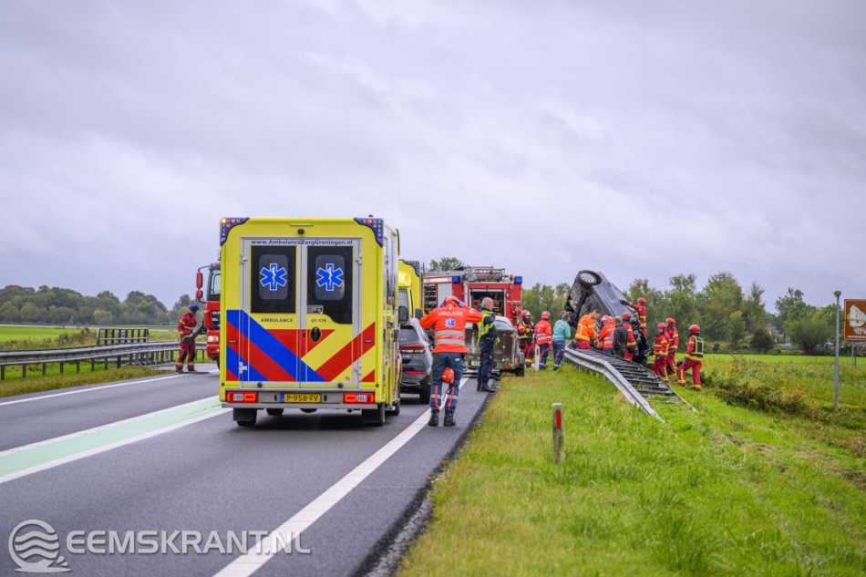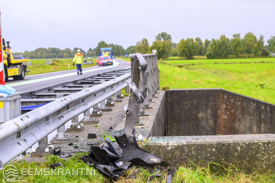 Appingedam – Op de N33 tussen Appingedam en Holwierde heeft zaterdagochtend een ernstig verkeersongeval plaatsgevonden. Een automobilist raakte door nog onbekende oorzaak van de weg, botste tegen de tunnelbak en kwam met zijn voertuig op de vangrail terecht. De auto bleef vervolgens deels over de rand van het viaduct hangen, met de voorkant naar beneden gericht.